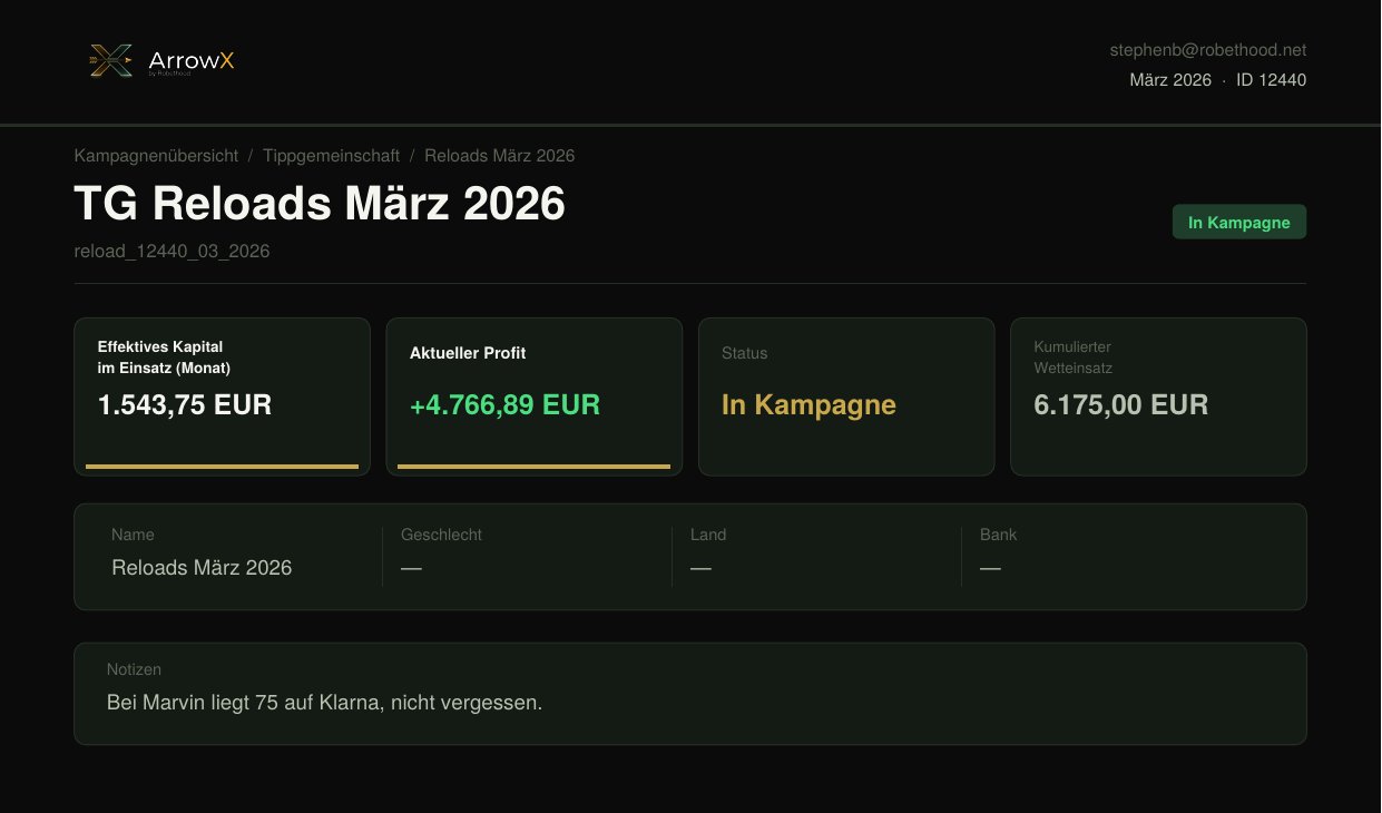 Keine Hochglanzversprechen. Echte Zahlen aus der Community, die mit uns freiwillig in der Community oder über unsere Wettsoftware ArrowX geteilt werden.